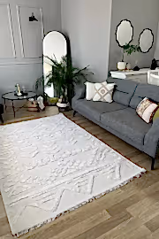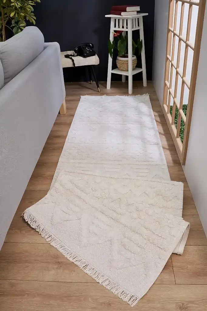 Apex Habitat 7601 Krem İskandinav Desen Halı - Pamuk / Krem / 77 X 150