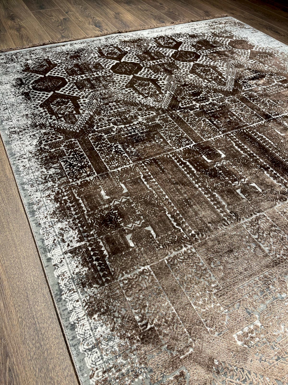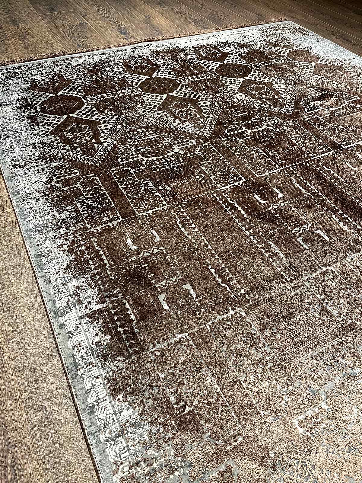 Eskitme Desen Kahve Bambu Özel Tezgah Halısı - Bambu - Viskon / Kahverengi / 160 X 230